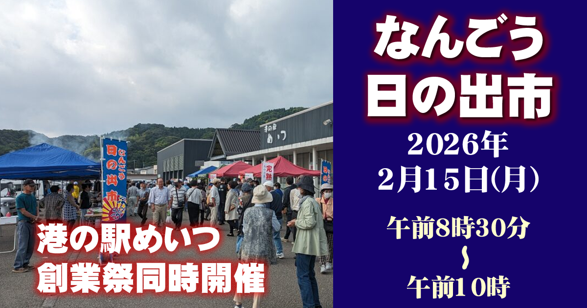 宮崎県日南市南郷町で開催される朝市イベント「なんごう日の出市」 が、2026年2月15日(日) に開催されます。